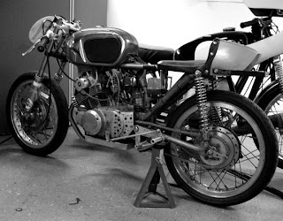 Can’t wait to fit the seat stays and put all the jewelry on-this should be a unique ride for sure. This is pretty much the look I was after with the first one, but time and tooling did not permit. Side note: Another thing that’s been in Ted’s shop have been a bunch of motorcycles. I recently learned that Ted was quite the accomplished flat track racer at one time. But a good friend of his races vintage motorcycles and he stores them every so often at Ted’s shop. I finally remembered my camera to take a shot or two of them. Unfortunately only 2 of the 4 were present this past friday, but my favorite was still there.